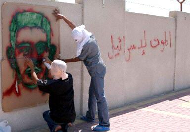 وردد المتظاهرون هتافات تطالب بدعم الفلسطينيين وتتوعد رئيس الوزراء الاسرائيلي ارييل شارون.