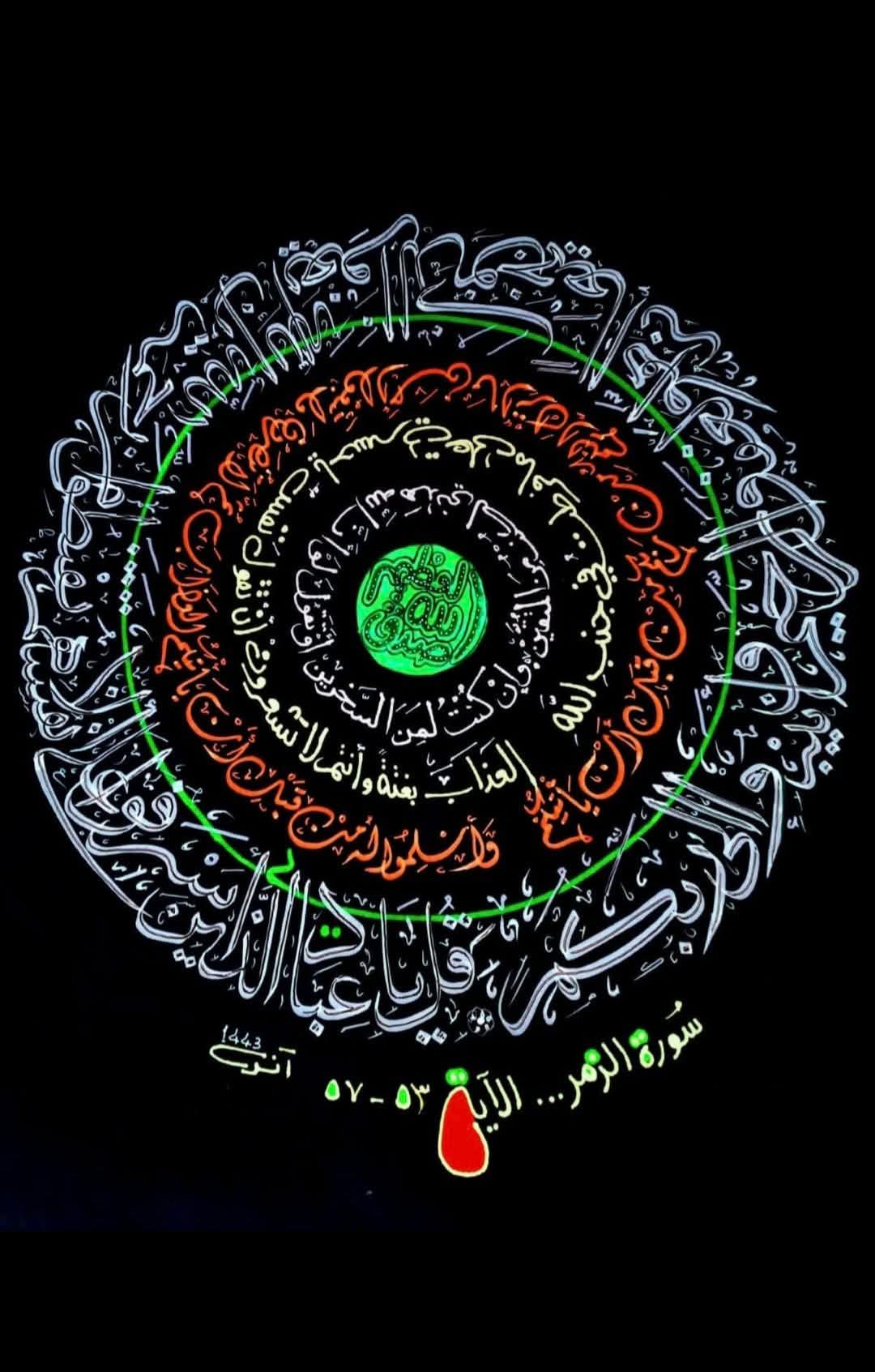 نعم، الخط العربي فن تشكيلي، يملك من الحروف المطواعة والمرنة الشيء الكبير، ما يمكن أن تمضي في الاتجاه الذي يبغيه الفنان. فهذه الحروف تمتلك من الحرية ما لا يمتلكه أي عنصر آخر من العناصر الفنية المعروفة، والفنان الحر والحق هو الذي يسيطر على تلك الحرية، حينها ستصبح بين ريشه كخاتم سليمان. وأنس حج قاسم يملك من تلك الحرية الكثير، ويملك من السيطرة على حروفه لدرجة عالية. وثمة أهمية لكل ذلك، فهي تمنحه أوكسجيناً مركزاً تدفعه إلى المضي نحو مساحات هندسية منظمة، والتي تُبنى خطوطها حول نقاط مركزية تتصف بتماثل عالٍ تذكرنا بتلك التكوينات الهندسية التي يتوسطها دوائر مركزية بدورها في كثير من أعماله، وكأنه يشير إلى الهدف الذي يريد الوصول إليه بوصفه نقطة الصفر ومركز المنشأ وسرّة الكون (علامات الانفصال والاتصال في آن واحد). فقاسم ينطلق من تجربته الشخصية الفنية التي تمتد لسنوات طويلة كأحد أهم مساهماته في إطار تقديم رؤيته في أمور حياتية في أمكنة تشكل مركز الانتماء والصراع. فهو يتبنى مرجعيات بصرية متبلورة وفق نظريات جمالية متأثرة إلى حد ما بالأساليب المتداولة، ولهذا فأعماله تزخر بمعماريتها المنطلقة من رؤيته الخاصة من جهة، ومن جهة أخرى من تلك الأشكال الهندسية المركبة التي تجاهد كي تتحرر من الأنماط الهندسية التقليدية، لتشكيل ما هو أقرب إلى التجريد التعبيري الذي يبني مساحات حروفية حرة تماماً، لا زوائد فيها ولا هوامش. فهو على يقين بأن اللغة بحروفها وخطوطها والتي يرسمها، ويخطها بأحاسيسه ومشاعره قبل أن يرسمها ويخطها بريشه وأصابعه، هي لغة واسعة وغنية للتفاعل والتواصل الإنساني مهما كانت تحمل من التجريد، لغة دقيقة بمكوناتها وتركيباتها قادرة أن تستكشف علاقتها بالواقع، تلك العلاقة وما تتضمنه من نقاء مطلق تتقاطع مع نقاء المنشأ ولحظة الولادة، رغم ما تهيمن عليها جوانب من التجريد. وتتنوع عناوين قاسم ومشاريعه الفنية المضمرة بإشارات بصرية لها قبتها الخاصة، ومساحاتها الخاصة.