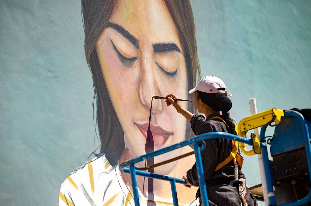 في حي آخر بالرباط تواصل الفنانة إيمان دروبي مغطية رأسها بقبعة رسم بورتريه واقعي لصانعة تقليدية، على جدار مدرسة عمومية. وتقول الشابة البالغة 36 عاما التي دخلت هي الأخرى عالم الجداريات من طريق المصادفة إن "تحويل حائط أبيض إلى لوحة فنية أمر مثير".