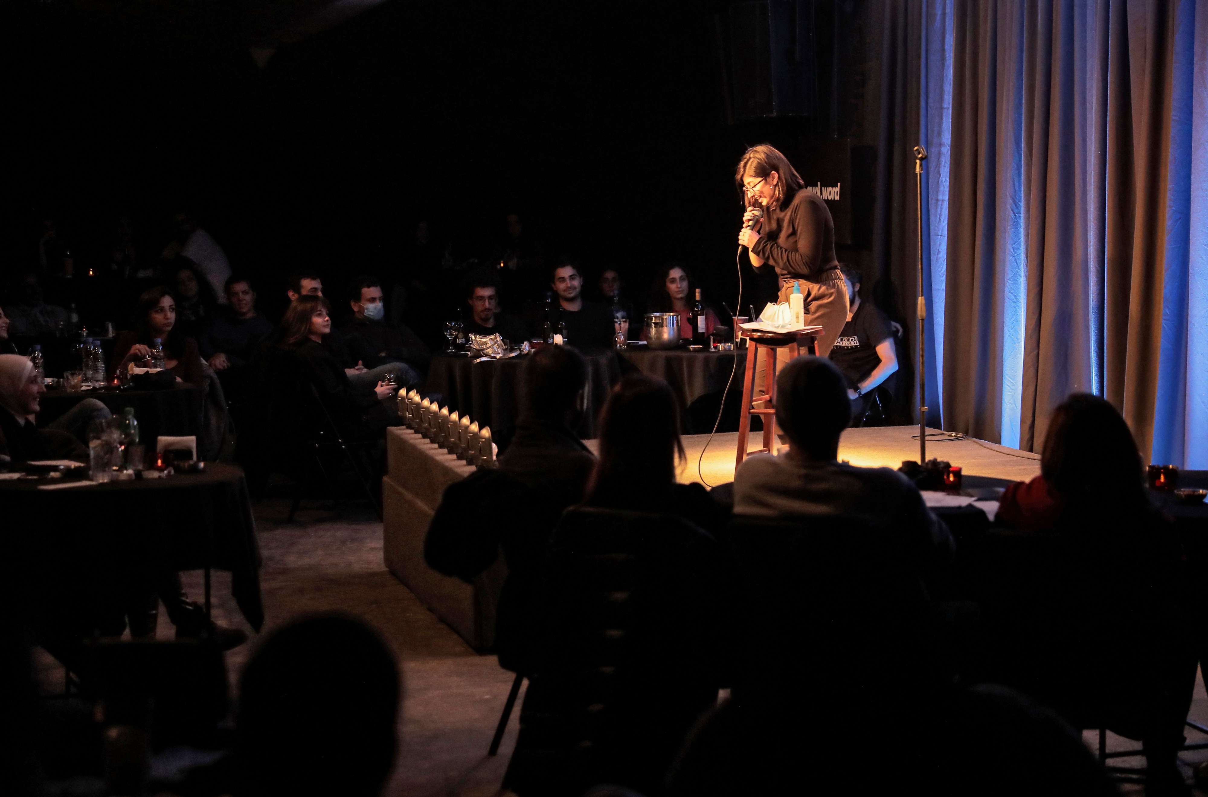 في قاعة للعروض الفنية في بيروت، داخل أحد الأحياء الأكثر تضررا جراء انفجار المرفأ في الرابع من آب/أغسطس الفائت، تنفجر الضحكات بين الحاضرين الذين أتوا للترويح عن أنفسهم وتناسي الضغوط المستمرة التي يعيشونها في ظل الانهيار الاقتصادي والمواجهة الصعبة مع جائحة كوفيد-19.