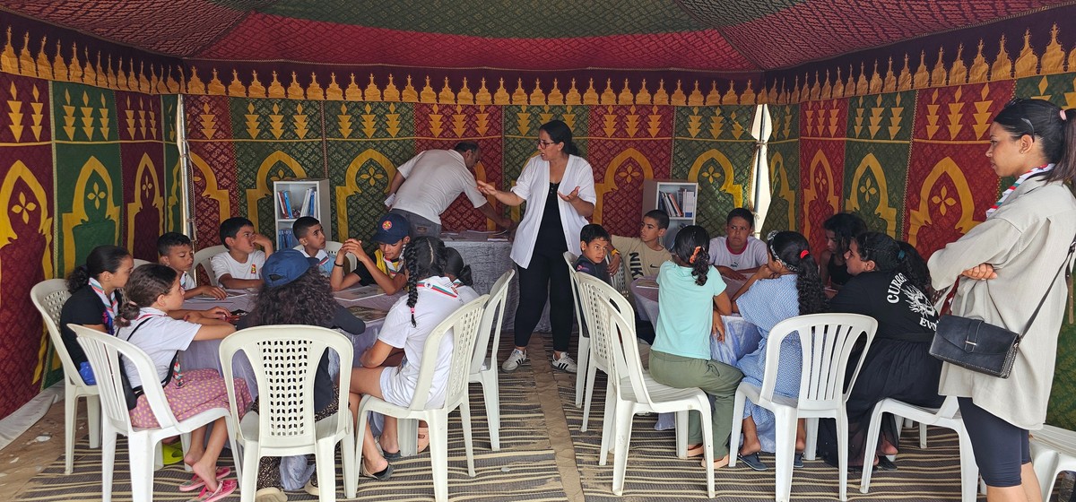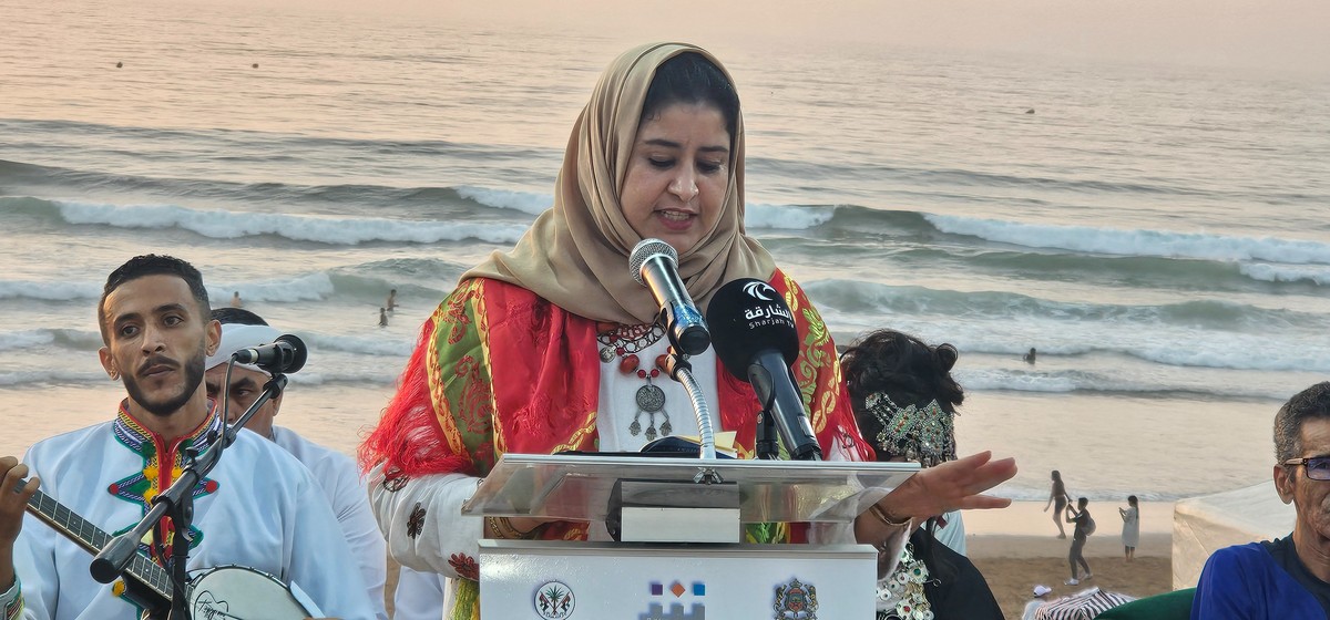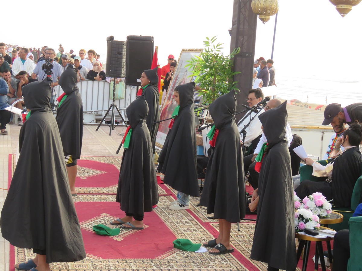 مراكش (المغرب) - قدم أطفال ومرافقي ومرافقات ورشات "الشعر الممسرح والإلقاء والتحسيس بالقراءة"، في حفل اختتام فعاليات الدورة السادسة لتظاهرة "شواطئ الشعر" التي نظمتها دار الشعر بمراكش أيام الأول والثاني والثالث من أغسطس/آب الجاري بشاطئ أكلو في مدينة تيزنيت، لوحة شعرية ممسرحة في محبة الوطن والشعر من إعداد وإخراج الفنانة نزهة الجعيدي.