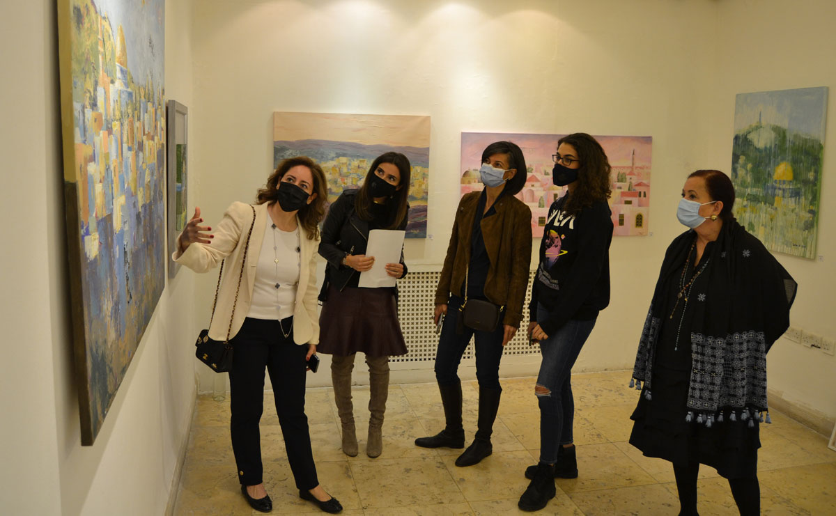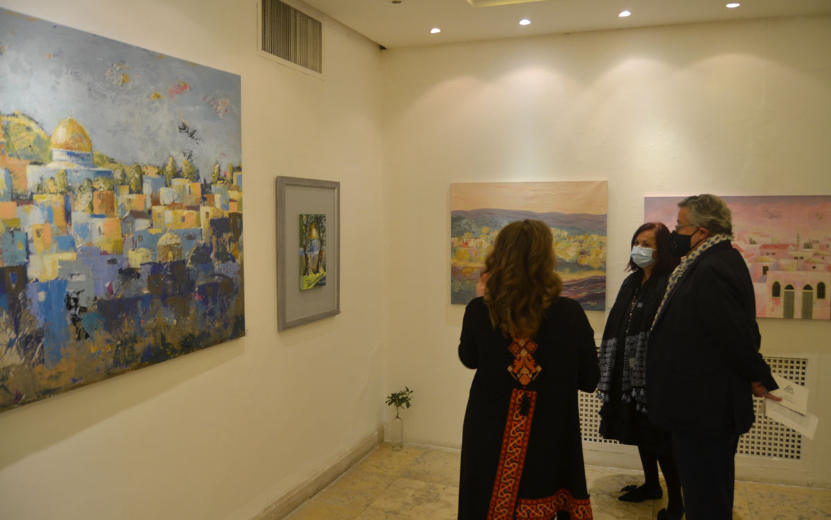 معرض "حنين القلب" يتناول مدن فلسطين، وهي رحلة عبرتها الفنانة من خلال قلبها ووجدانها حيث رسمت مدن فلسطين لتتواصل عبرها مع هويتها وتراثها وأسلافها.