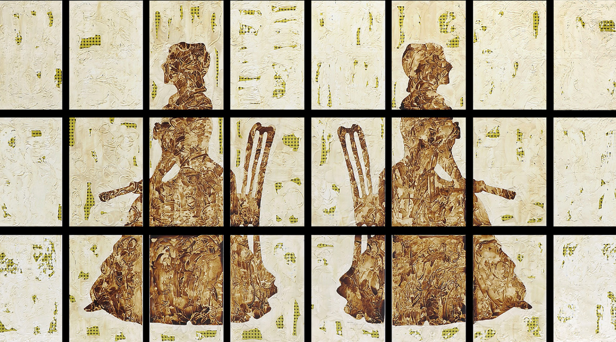 النقلة الثالثة في معرض "الاربعة" مع أصدقائي الثلاثة في الخبر في تراث الصحراء والذي كان دمجاً ما بين تجربة الجرافيك وفني السابق في المعرض الأول بخامات مختلفة والذي لاح فيه لون التربة الذي لازم أغلب لوحاتي وحدد طريقتي الفنية.