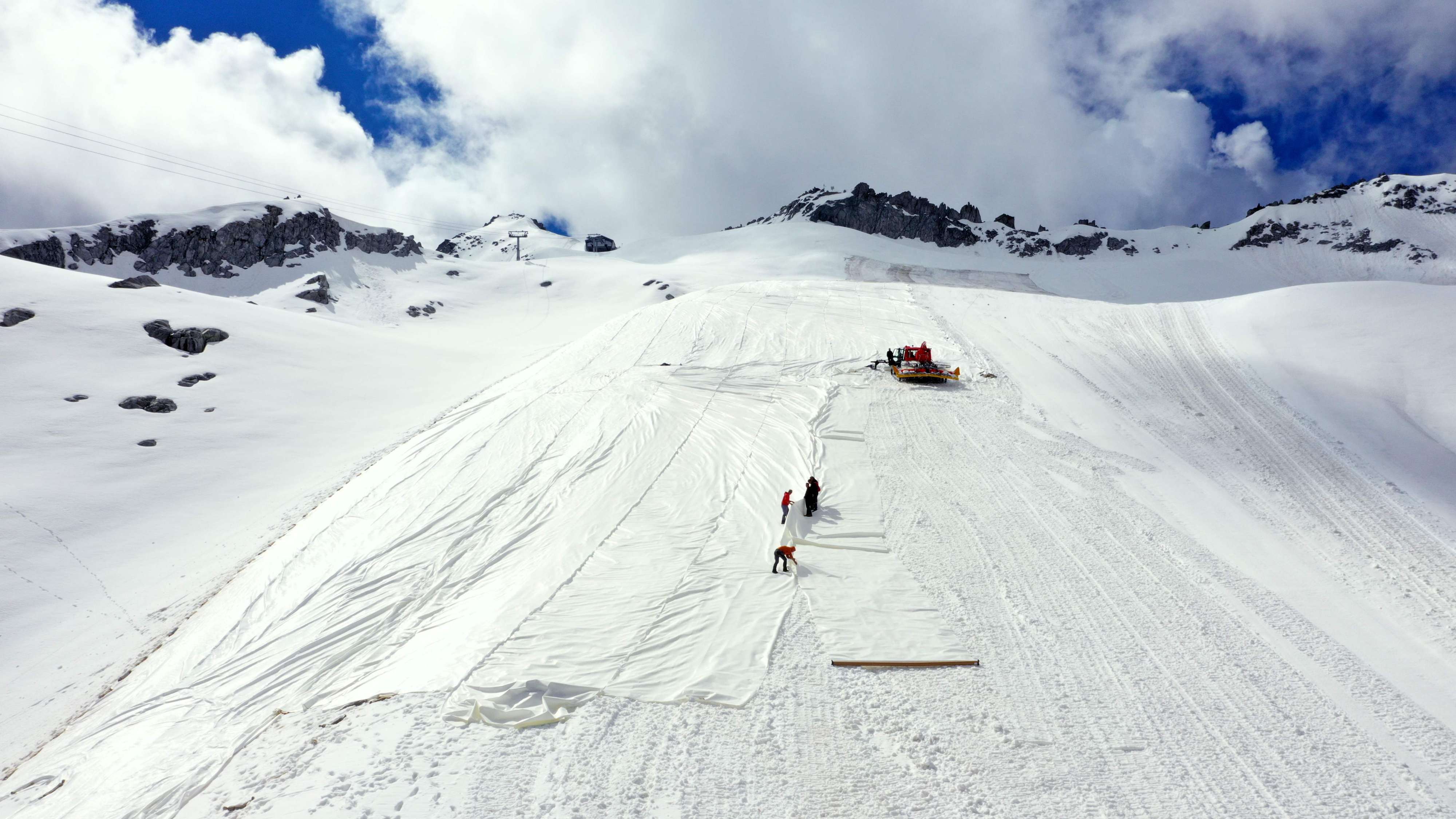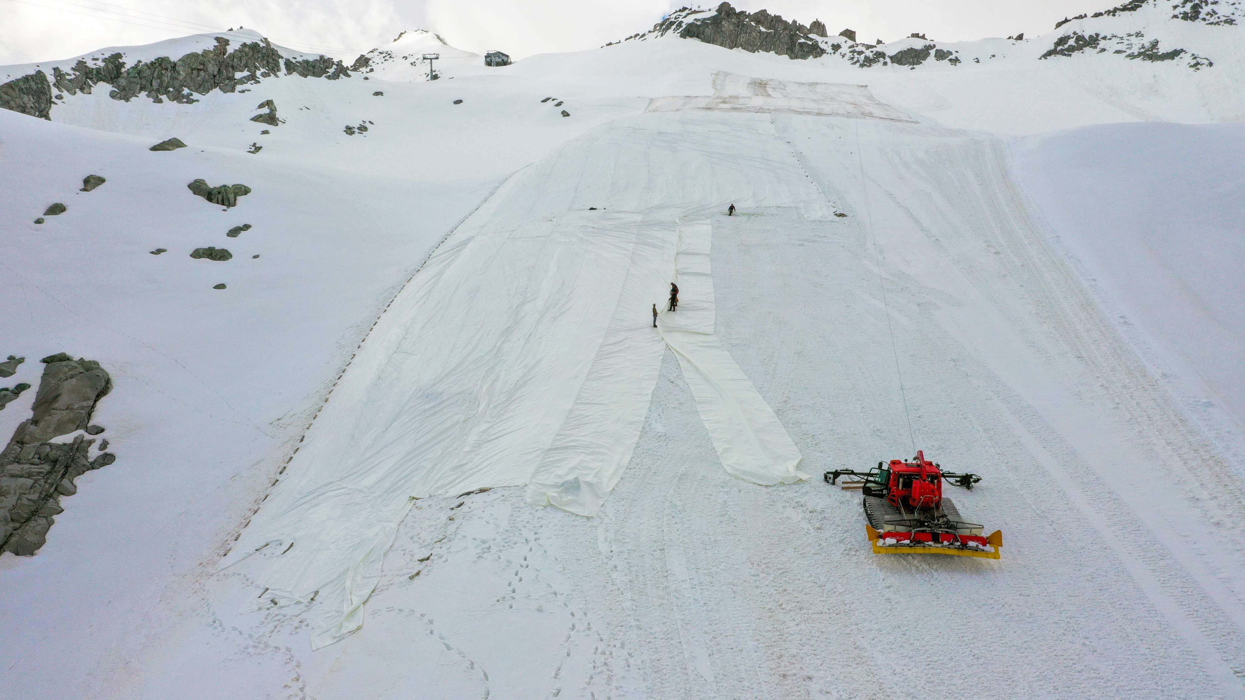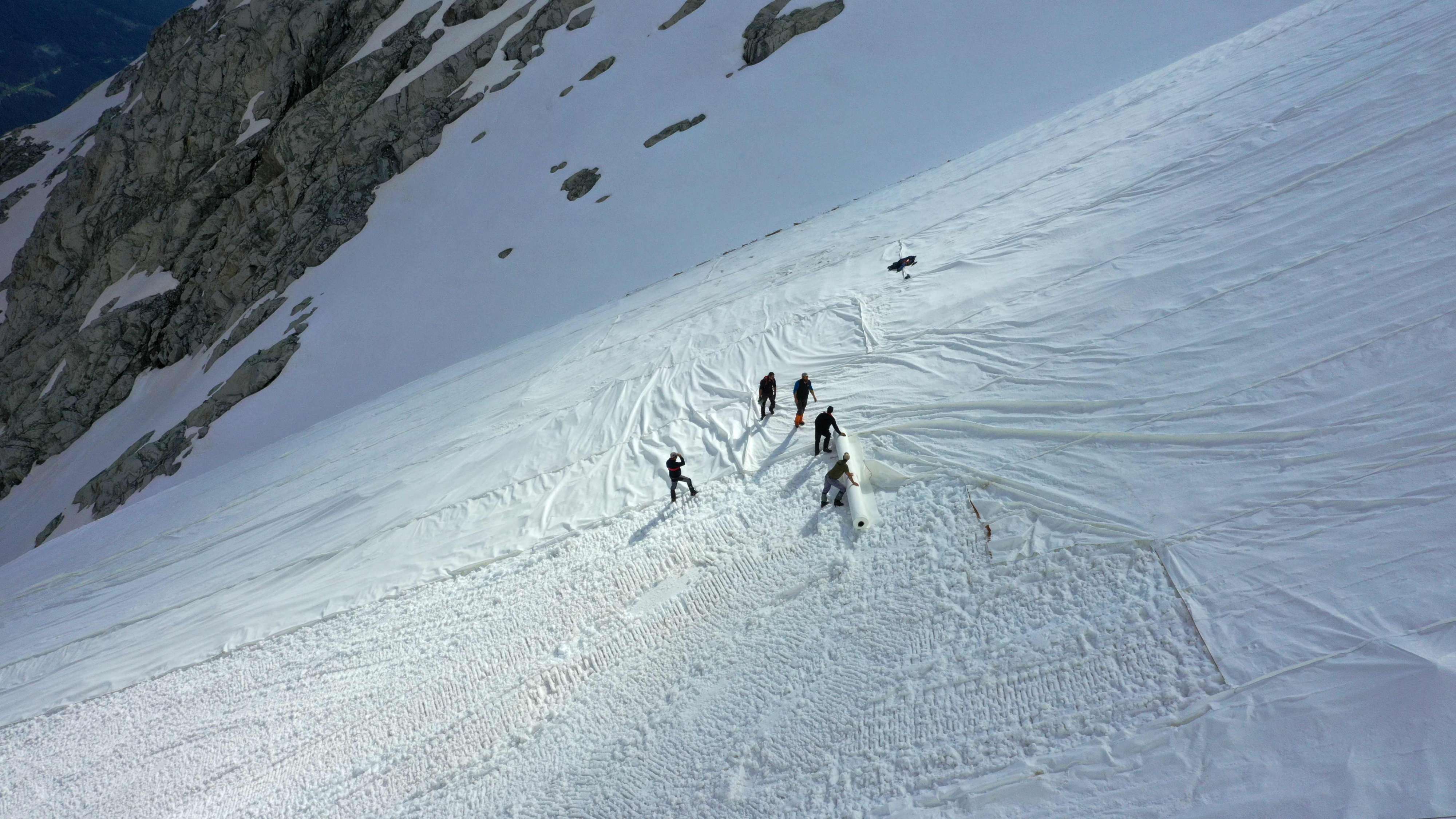 ومع انتهاء موسم التزلج وتوقف عربات نقل المتزلجين الآلية، تبذل جهود في محاولة للحد من ذوبان الجليد.