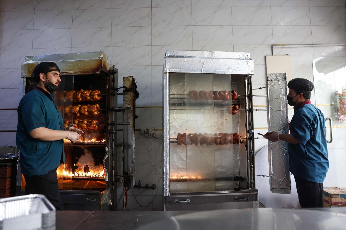 ويعاون الدعيسي (26 عاما) ثلاثة موظفين في مطبخ ضيق المساحة يرفع حرارته شواء الدجاج على الفحم أو آلات عاملة بالغاز، وقدور ضخمة لإعداد الأرز.