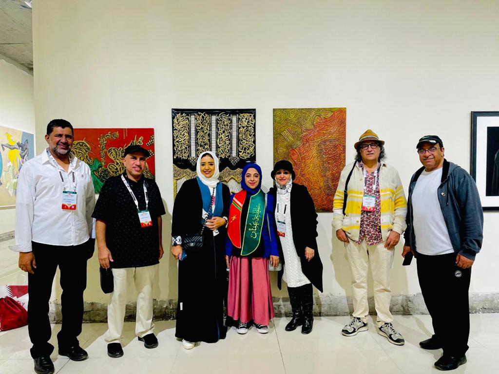 وعادل الذوادي، من مملكة البحرين، واشيد الحافرة، وردفان المحمدي، وجلال الشميري من اليمن، بجانب الفنانة نجوى رشيد رئيسة الرابطة العربية للفنون.