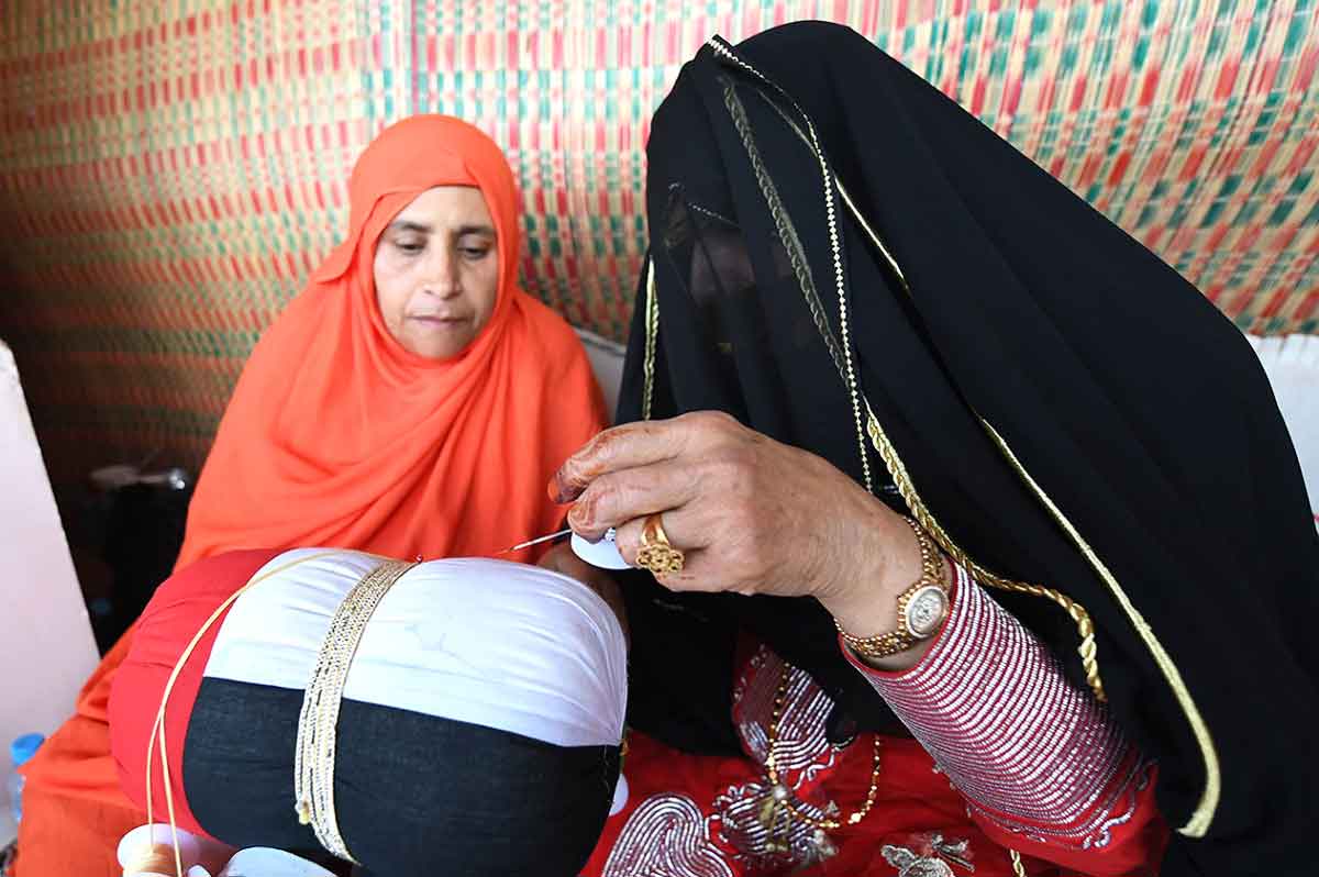 يحتضن جناح دولة الإمارات العربية في موسم طانطان، ورش عمل نسوية مشتركة في مجال الصناعة التقليدية، وذلك بالتعاون مع الاتحاد النسائي العام في الإمارات وعدد من المؤسسات المغربية متمثلة في مندوبة التعاون الوطني والجمعية الإقليمية لتربية والتكوين وتأطير والمراكز الاجتماعية، حيث نقدم هذا العام ورشة تعليم الصناعات والحرف التقليدية للنساء.