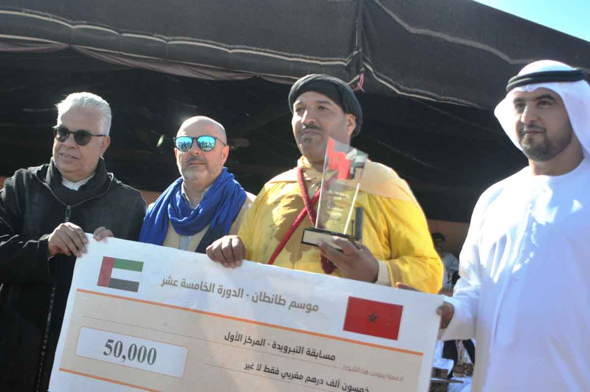 طانطان (المغرب) ـ توجت اللجنة المنظمة لموسم طانطان بالمملكة المغربية، الفائزين في مسابقة "التبرويدة" المقامة برعاية جناح دولة الإمارات العربية المتحدة، والتي انطلقت فعالياتها الأحد الماضي في ساحة السلم والتسامح بمدينة طانطان.