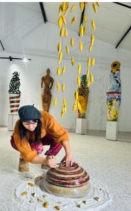 حضور كبير بين طلبة الفنون الجميلة والأساتذة والنقاد وأحباء الفنون ورواد المعارض، للاطلاع بين النظر والتقبل والتأويل بشأن أعمال فنية مختلفة التلوينات والأساليب، وفق مشروع أسماء عبد اللاوي، الذي هو ثمار تجربة بمساراتها في البحث والمكابدة الجمالية المتشكلة منذ الانطلاقات الإبداعية والفنية والأكاديمية الأولى، وفق علاقة واعية ومتواصلة مع الطين، وما أدراك ما الطين مادةً وأصلًا ومرجعية، باعتبارها مادة لا تُستثمر هنا كوسيط تشكيلي فحسب، بل تُستعاد بوصفها الأصل الأنطولوجي، وما تمثله كذاكرة مادية حاملة للأثر والزمن.. جسدًا أولًا، وسطح كتابة، ومجالًا حيويًا تتقاطع فيه التجربة الإنسانية مع مسارات متعددة مختلفة متتالية التحول والتشكّل…