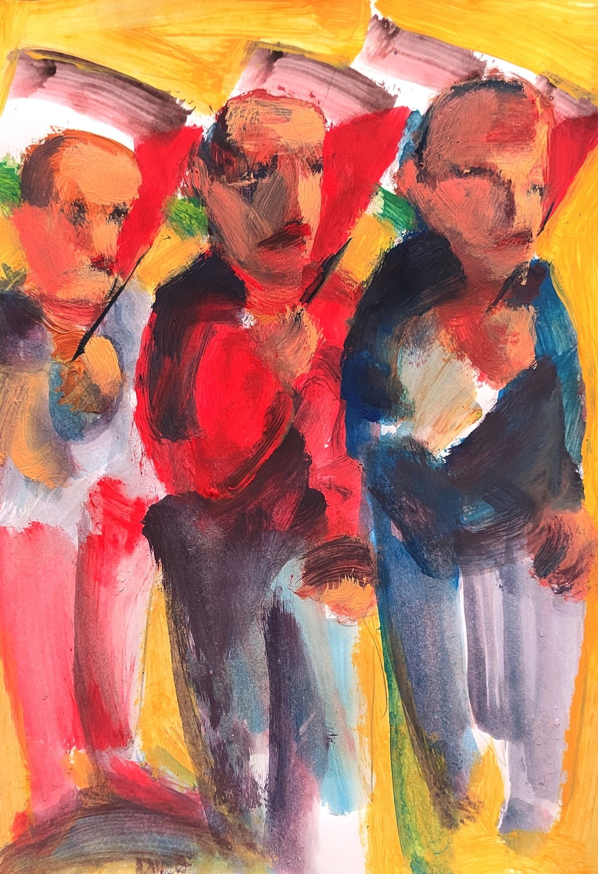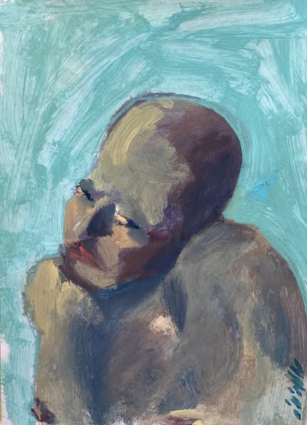 ويتابع "ففي لوحاته الكثيرة التي لم ينقطع عن إنتاجها في صراعه من أجل القبض على عنف الواقع وهشاشته في آن، يتخذ فيها الإنسان بأطواره المختلفة، نازحا مكسورا كان، أو صيادا يصارع ضيق البحر ورعبه، أو جريحا، أو شهيدا، أو شاهدا، كبيرا أو صغيرا، مركزية لافته إلى جانب حضور خفيف للكائنات القليلة".