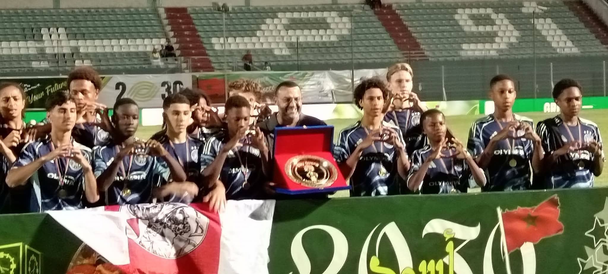 توج فريق أياكس أمستردام الهولندي بالدوري الدولي "أسود 2030" لأقل من 16 سنة خلال الحفل المنظم بملعب الفوسفاط بخريبكة بعد تغلبه على فريق أكاديمية محمد السادس وصيف الدورة بالضربات الترجيحية بحصة 3/4 بعدما انتهت المقابلة النهائية للدوري بنتيجة التعادل.
