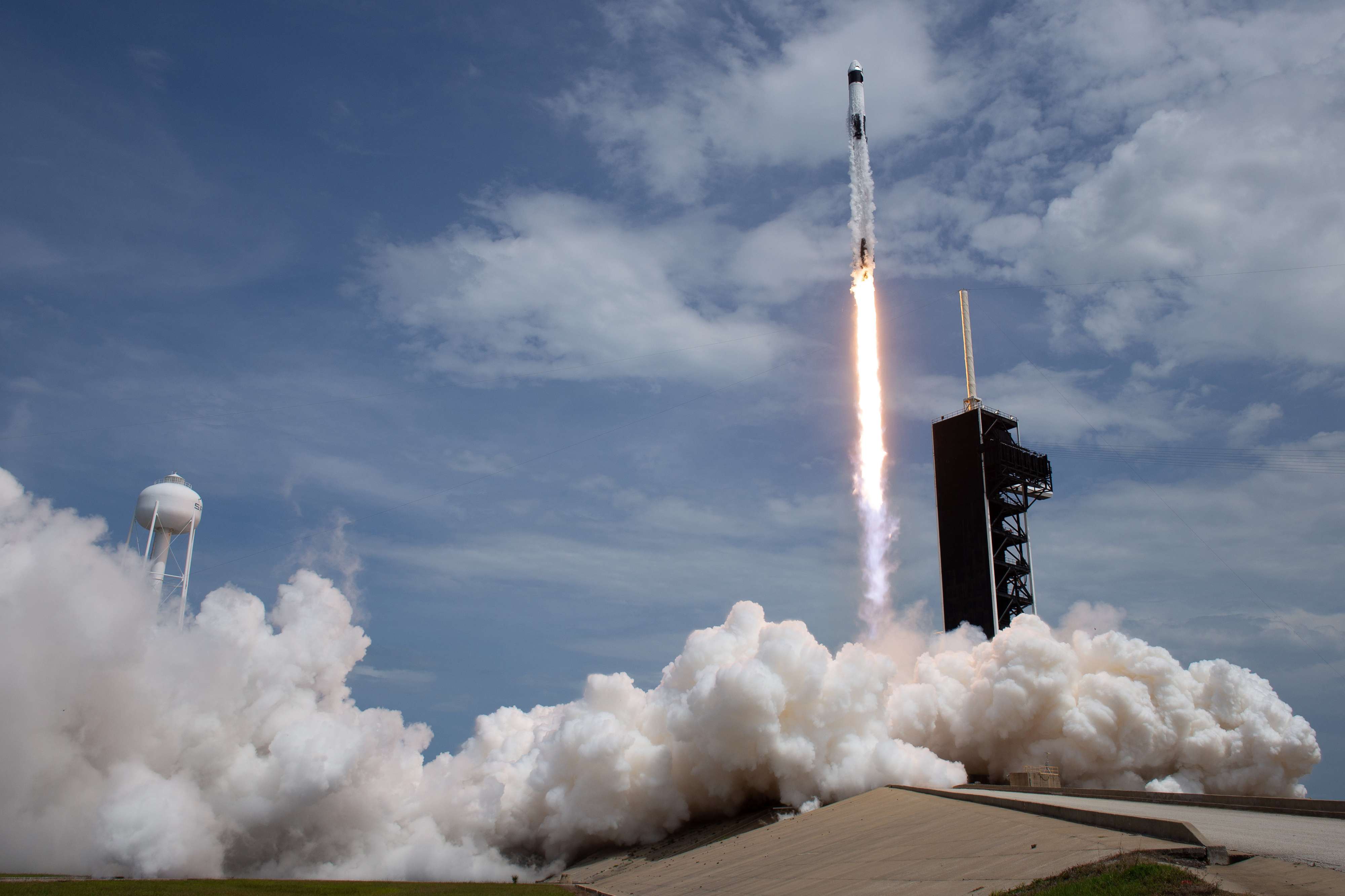 وانفصل الجزء الأوّل من الصاروخ البالغ طوله سبعين مترًا، كما هو مقرّر، بعد دقيقتين من التحليق، وهبط في قاعدة قبالة فلوريدا، فيما وضع الجزء الثاني الكبسولة "كرو دراغون" في المدار المناسب، في اتّجاه المحطة الفضائية الدولية بسرعة تجاوزت 27 ألف كلم في الساعة.