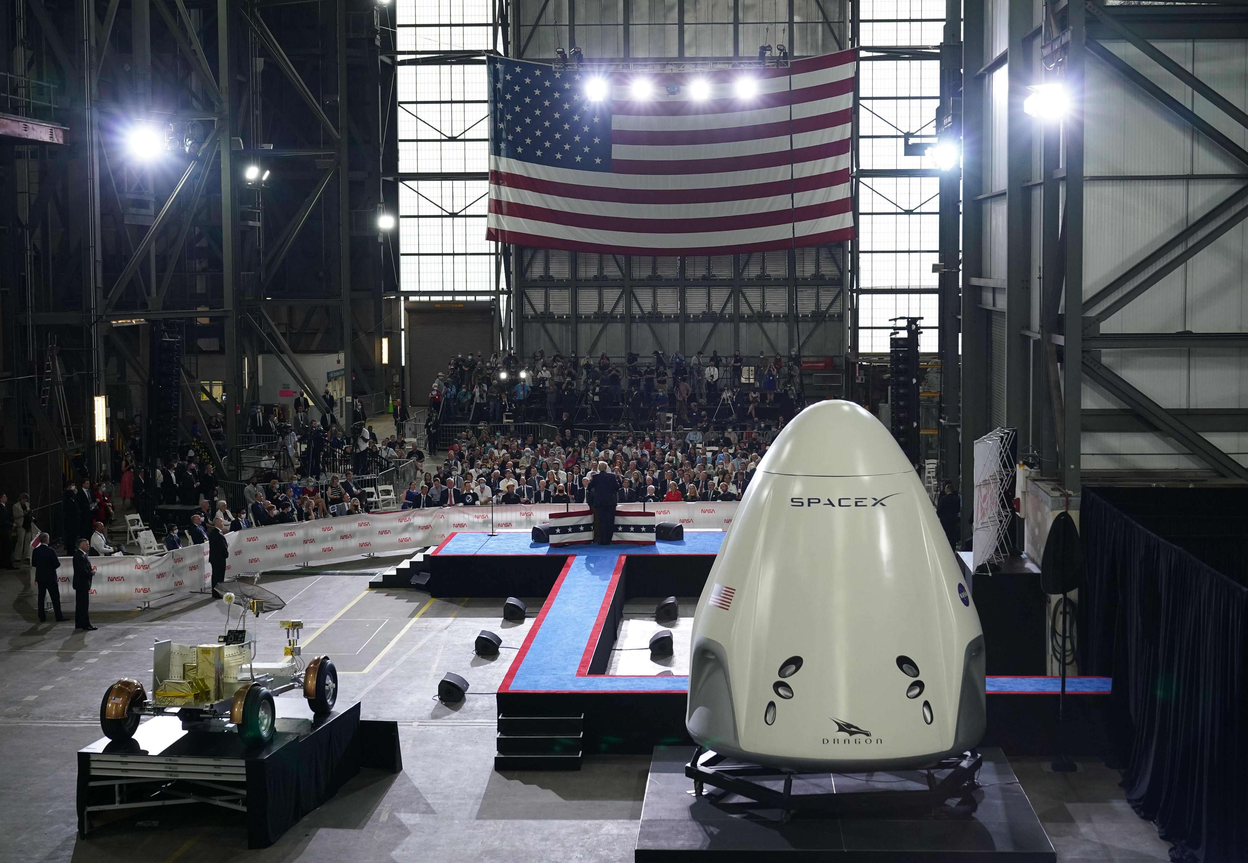 وحضر الرئيس الأميركي دونالد ترامب شخصيّاً عمليّة الإطلاق على بعد بضعة كيلومترات. وقال "لا أحد يقوم بذلك مثلنا"، معتبراً أنّ إنجازات الولايات المتحدة في الفضاء هي "أحد الأمور الأكثر أهمّية التي قمنا بها".