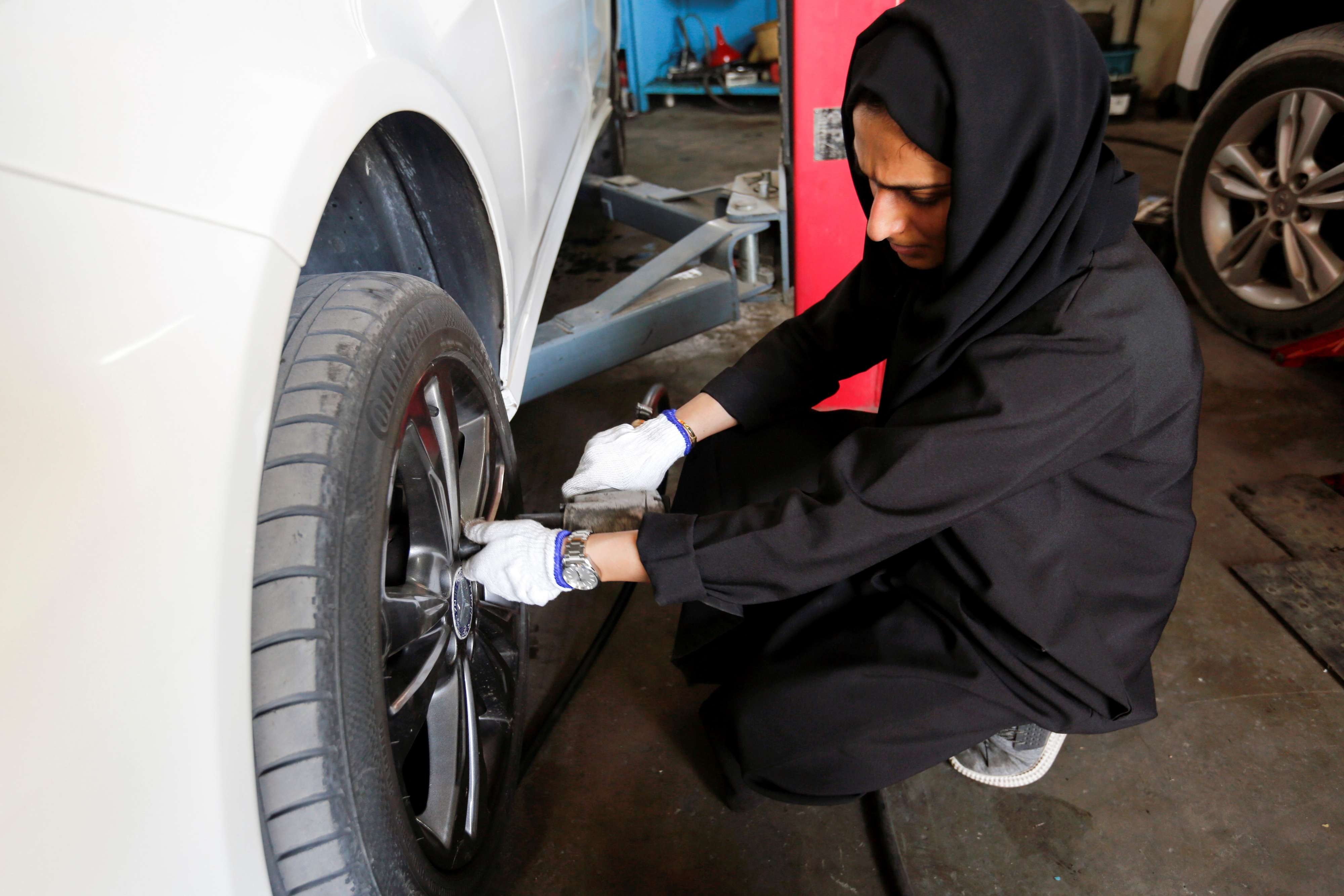 وهدى واحدة من إمارتيات قليلات يغامرن بالعمل في مجال إصلاح السيارات الذي يهيمن عليه الرجال في العالم العربي منذ زمن.