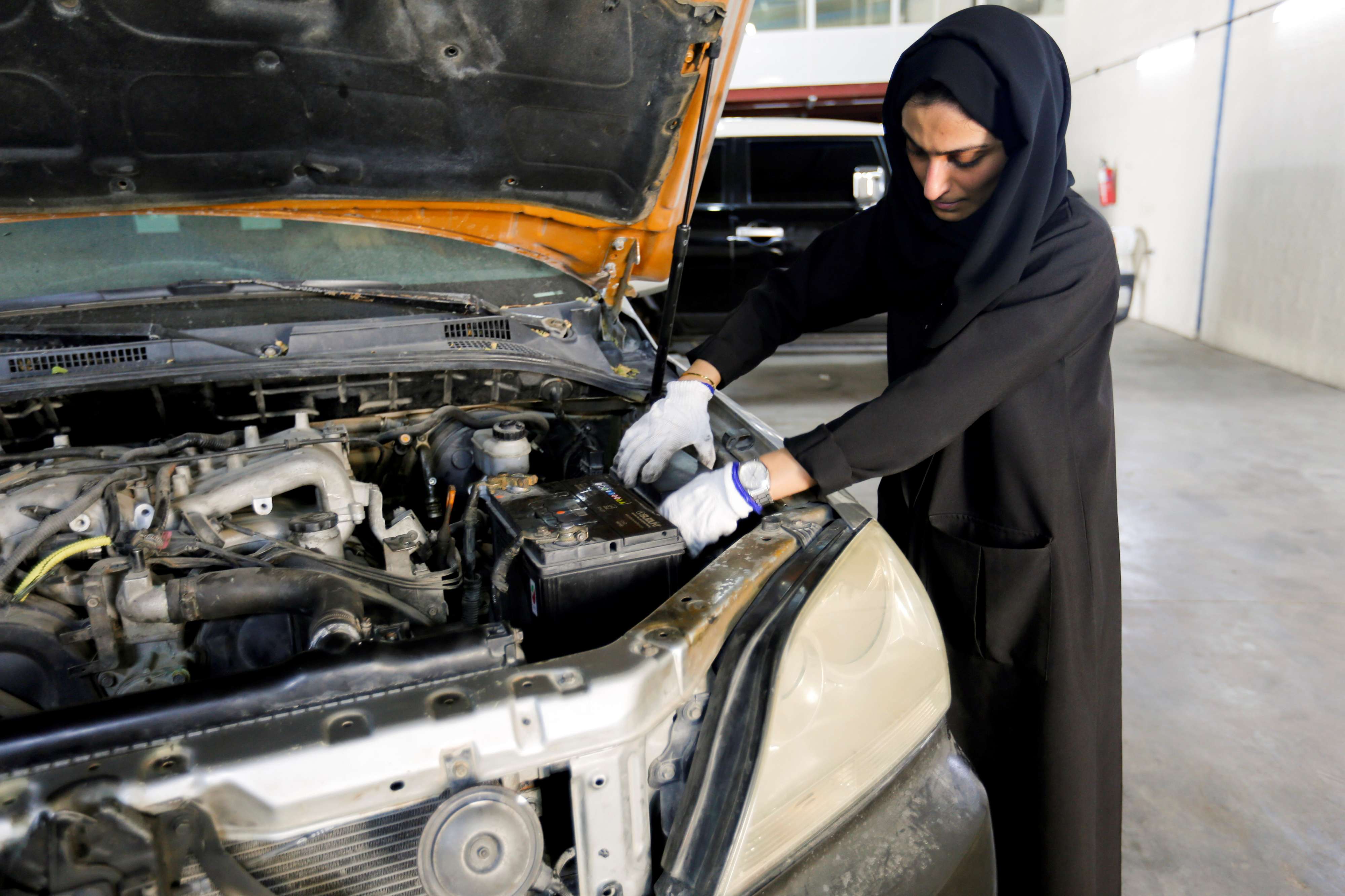 إماراتية تكسر احتكار الرجال لمهنة تصليح السيارات