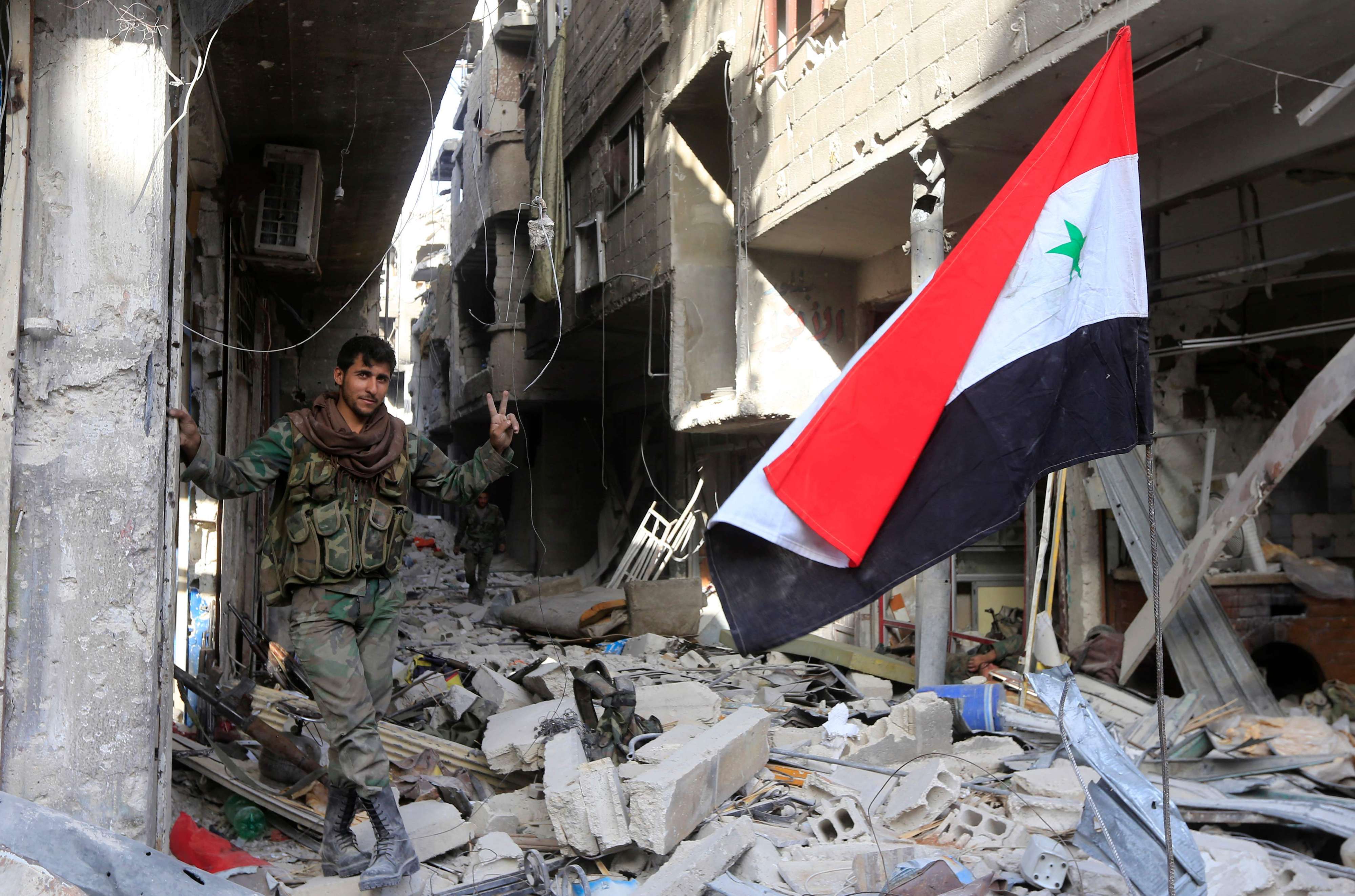 وسيطر الجيش السوري الاثنين على كامل دمشق ومحيطها للمرة الأولى منذ العام 2012 معلناً إياها مناطق "آمنة" إثر طرده تنظيم الدولة الإسلامية من آخر جيب له في جنوب العاصمة الذي يعد مخيم اليرموك للاجئين الفلسطينيين أبرز أحيائه.