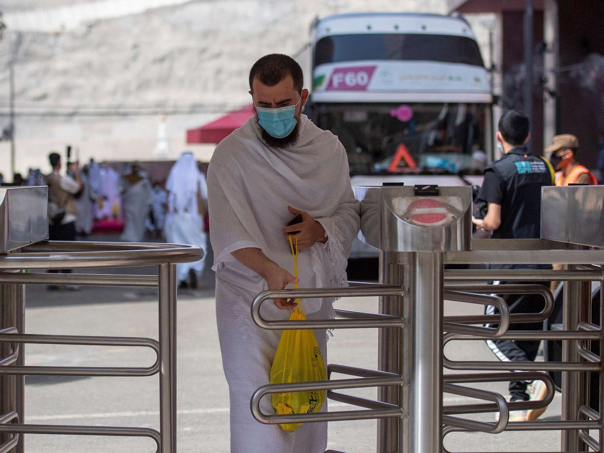 وكان الحجاج بدأوا بالوصول إلى مكة خلال عطلة نهاية الأسبوع، وخضعوا لفحص لدرجة الحرارة وُوضعوا في الحجر الصحي في فنادق المدينة.