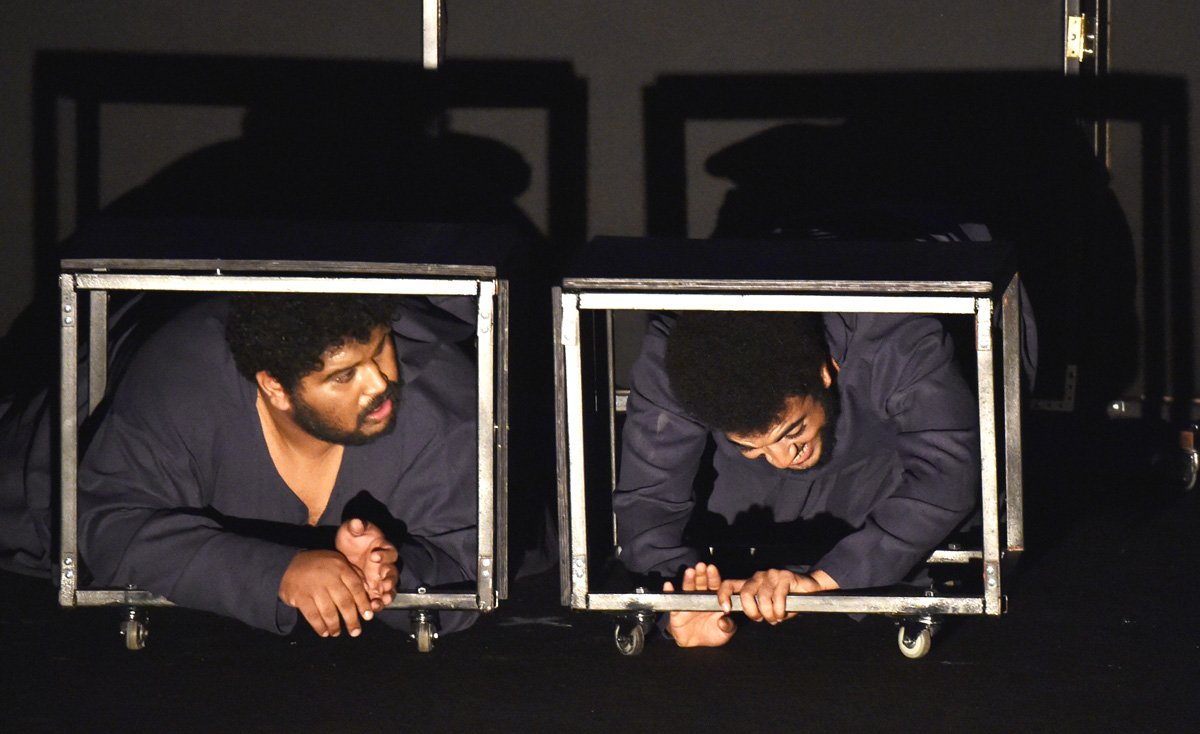 كل هذا بلوره النص وألقاه أو أداه ثلاثة ممثلين على خشبة المسرح، تباينت أداءاتهم بين الضعف والقوة، بدا أن هناك استعدادا لديهم في تقديم أداء مميزة يليق بنص جرئ في رسائله وقوة في لغته ومعالجة أفكاراه الوجودية، لكنهم فيما يبدو لم يتعايشوا مع هذا النص أو لم يتلقوا التدريب الكافي الذي يكفل لبهم امتصاص رؤيته ورسائله، وهي رسائل إنسانية عميقة، أوما خانتهم ضبابية النص، فبدوا كمتلقين وليس ممثلين خاصة أن المخرج حملهم فوق طاقاتهم فلم يتح لاثنين منهما تحديدا أن يلتقطا أنفاسهما، فهما في مواجهة الجمهور طوال العرض، لذا كان أحرى بالمخرج أن يختار الفكرة الأقرب للتيمة الرئيسية أقصد السجن ويشتغل عليها خالقا مشاهد بصرية وجمالية وتشكيلات سيناغرافية تساعد ممثليه وتفتح للمتلقي آفاق التجاوب معهم.