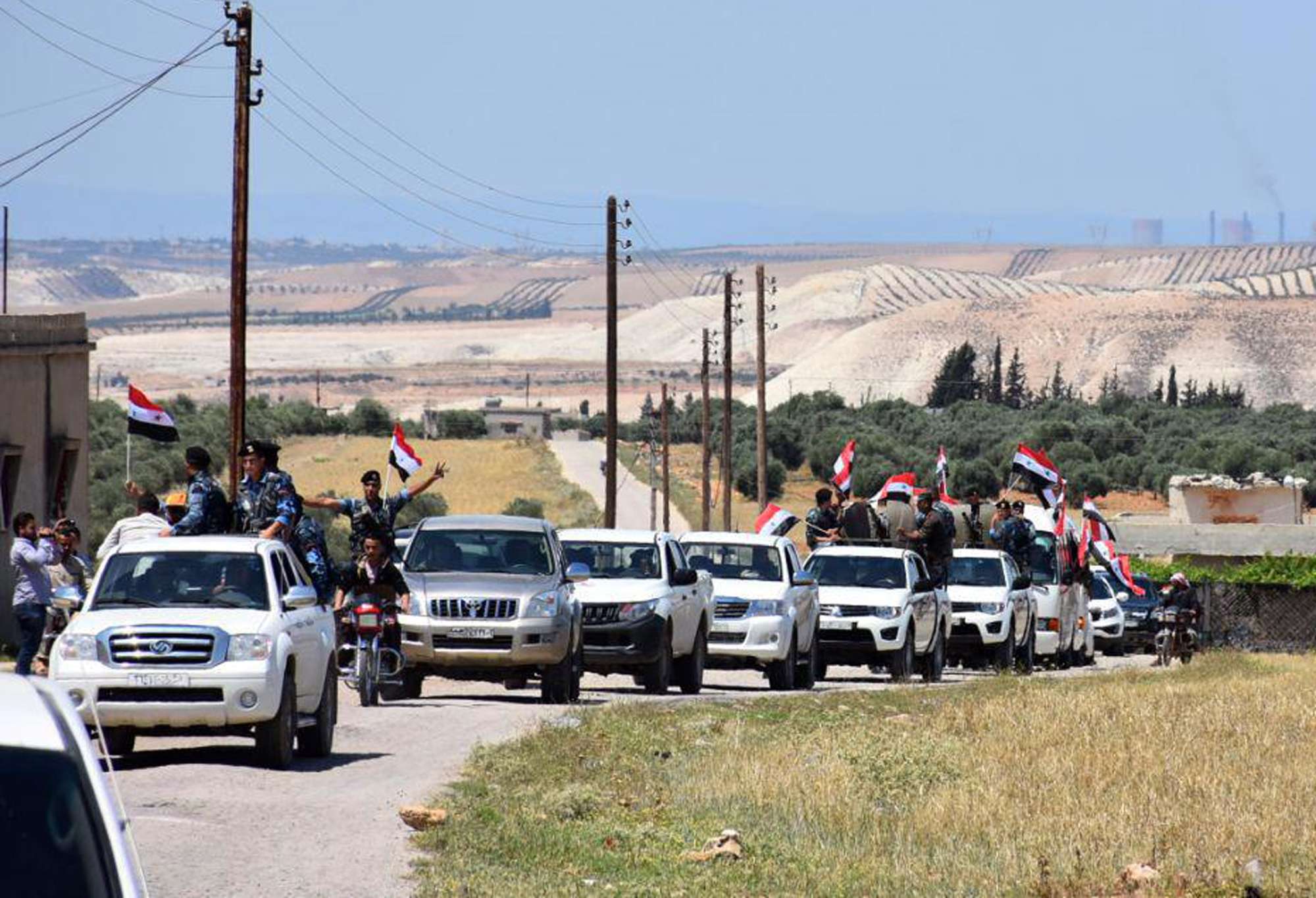 وأوردت وكالة الأنباء السورية الرسمية (سانا) "إخراج الدفعة الأخيرة من الإرهابيين غير الراغبين بالتسوية وعائلاتهم من ريفي حمص الشمالي وحماة الجنوبي".