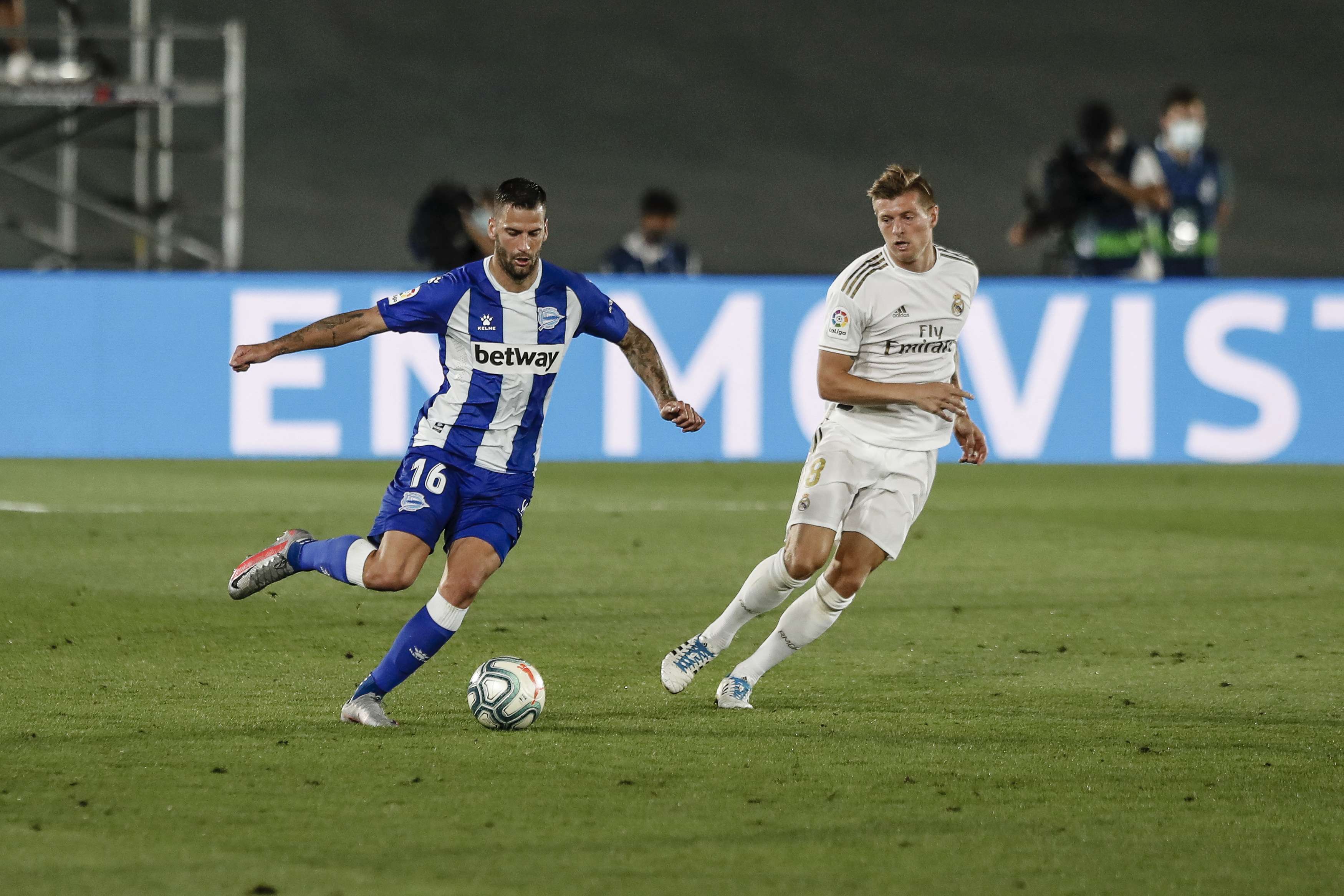 ودخل ريال مدريد المباراة وهو في حاجة الى تحقيق ثلاثة انتصارات في ما تبقى له من مباريات ليتوج بطلا للمرة الاولى منذ عام 2017.