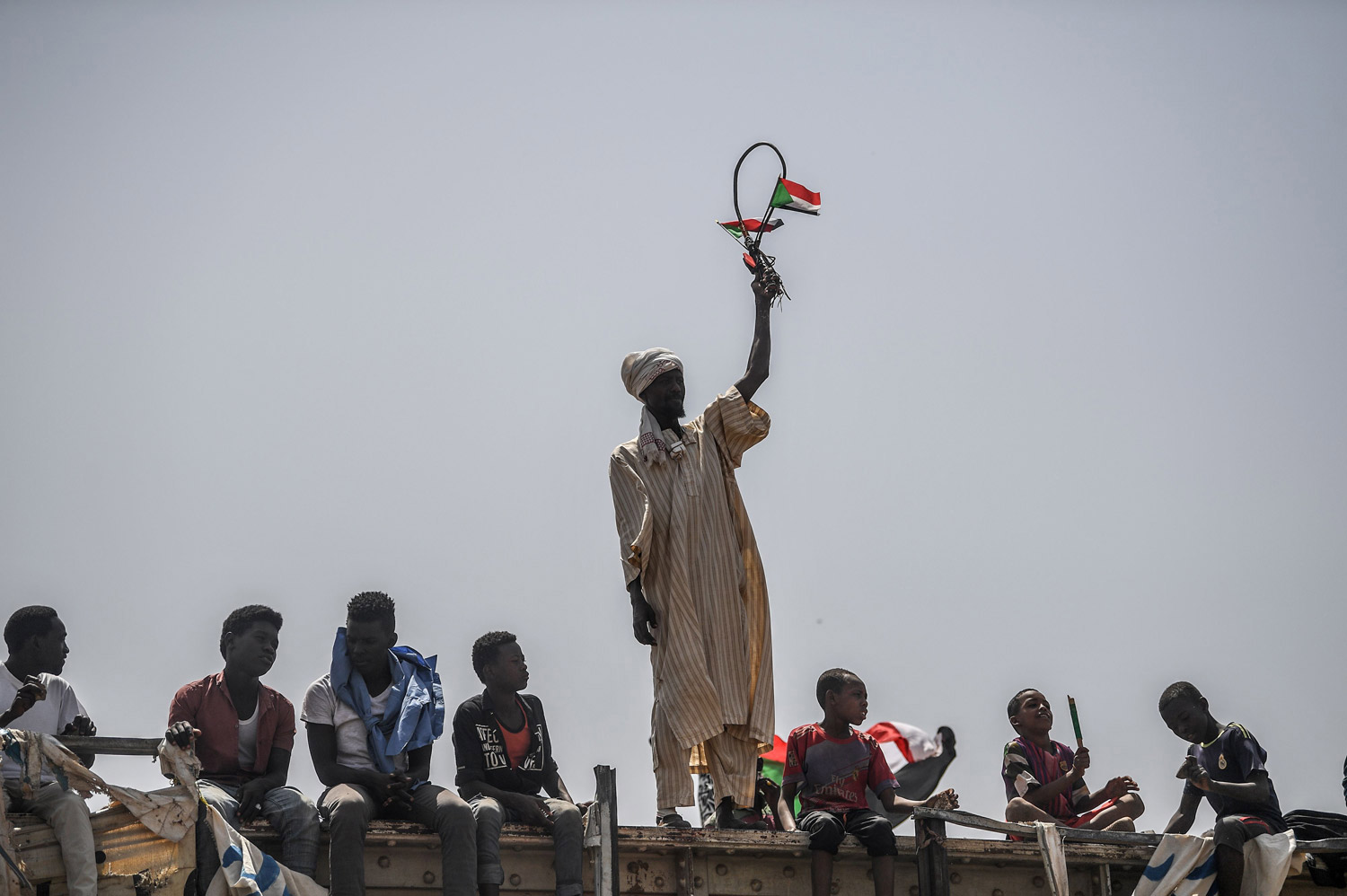 وعلقت صور لمنازل مدمرة وقرى محروقة ونساء تعرضن للاغتصاب في دارفور خارج مقر القيادة العامة للجيش في الخرطوم، حيث أقام المتظاهرون ساحة اعتصام في إطار الاحتجاجات التي اجتاحت البلاد منذ كانون الأول/ديسمبر وأدت للإطاحة بالبشير.