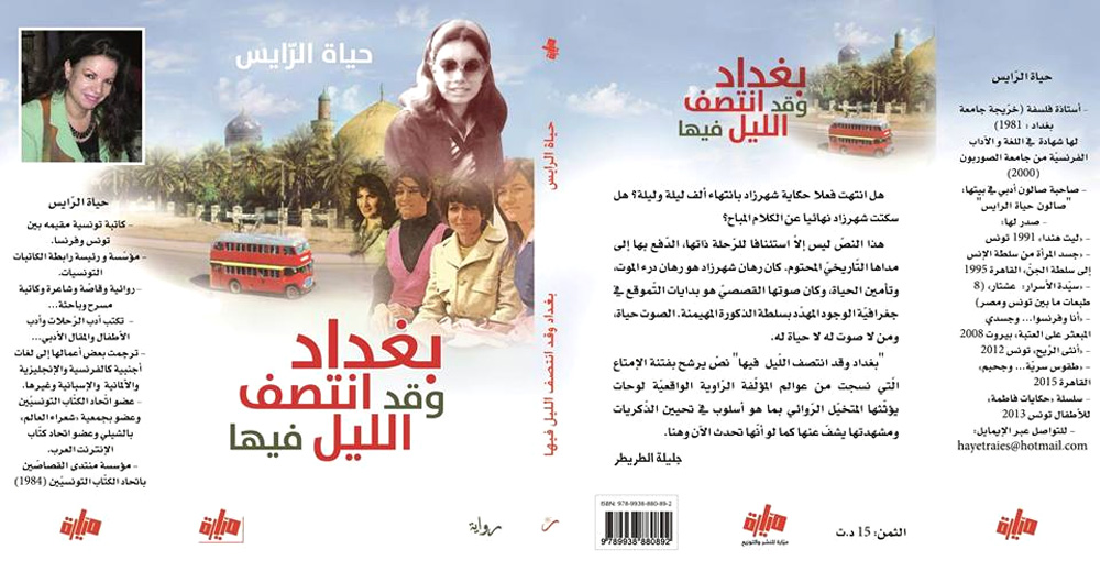 أما الكاتبة التونسي حياة الرايس، فقد تحدثت في شهادتها عن روايتها الصادرة في تونس هذه السنة بعنوان "بغداد وقد انتصف الليل فيها"، وهي رواية سيرة ذاتية ذيَّلتها الرايس بعنوان فرعي "مذكراتي الجامعيَّة ببغداد" لتحديد مرحلة زمنية معينه هي مرحلة دراستها ببغداد.
