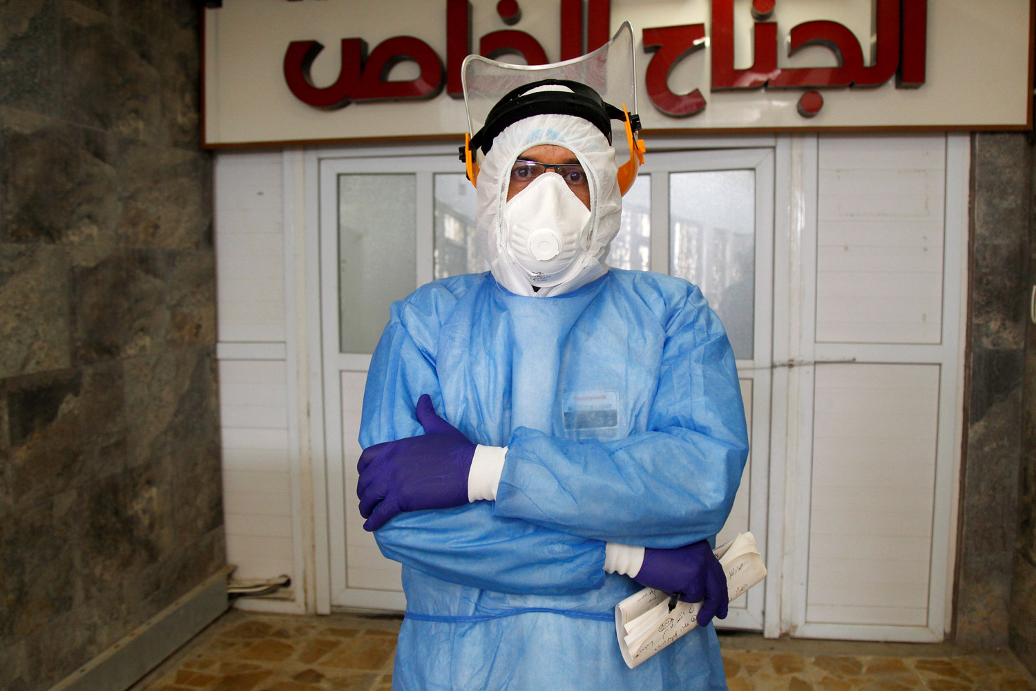 ولكن مع التفاعل الكبير مع المرضى المصابين، يقول فلاح إنه بحاجة إلى تبديل الكمامة مراراً، وعليه بدأ في استخدام راتبه الشهري البالغ 750 دولاراً لشراء معدات الوقاية.