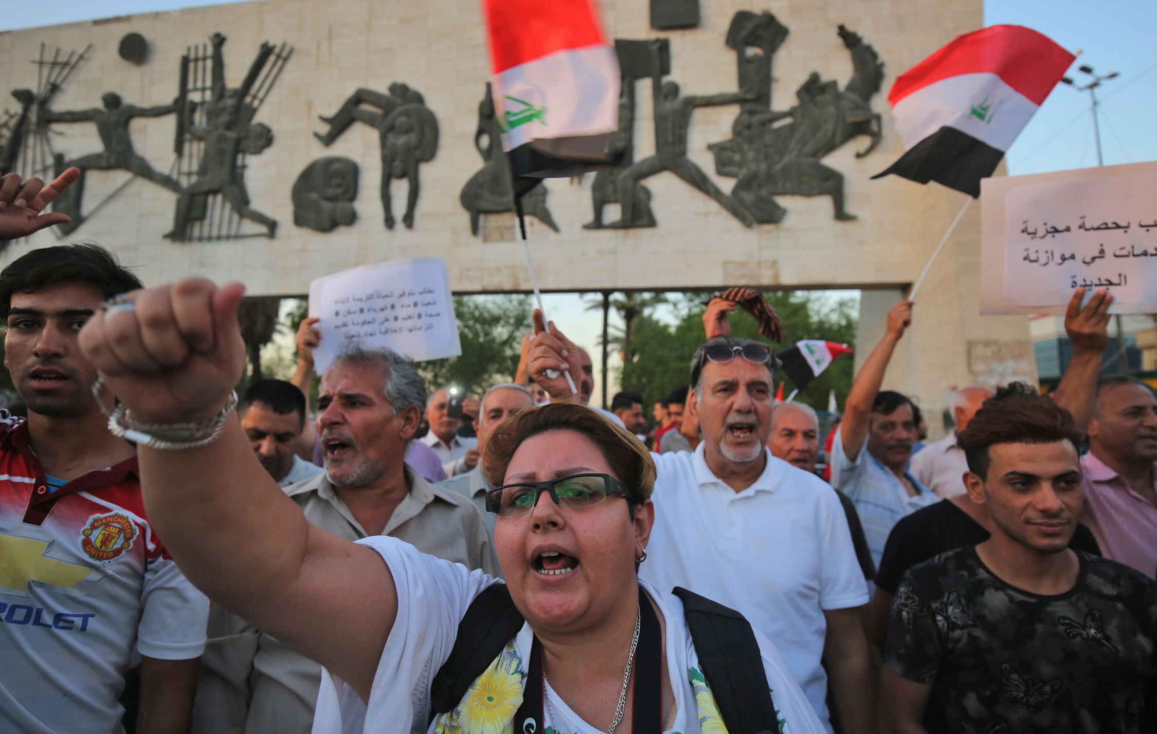 وقال إبراهيم الركابي أحد المتظاهرين، إن "المئات قرروا اليوم التظاهر ضد سياسات الحكومة الاتحادية الفاشلة في إدارة الدولة، فلا خدمات ولا ماء ولا كهرباء ولا وظائف".
