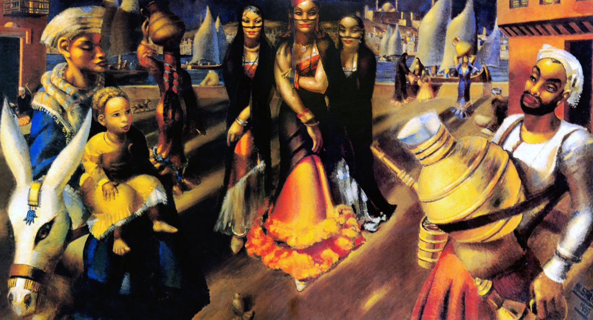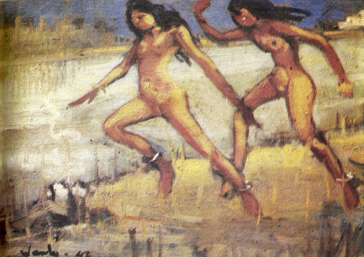 وسعدت بخروج الأخوين إلى الحواري والشوارع والأزقة والميادين والأسواق والمقاهي الشعبية والشواطئ والميناء، واتجاههما إلى النسوة المتلفحات بالملاءات اللف، وإعجابهما بـ "بنات بحري" التي رسمتُها عام 1935 رغم اختلاف المفاهيم والمدارس. لقد أخرج أدهم بنتين من بنات بحري من لوحتي وأطلقهما عاريتين في اتجاه الشاطئ قبل أن يرتاده أحد من الناس، وذلك عبر لوحته الجميلة "المستحمتان" التي رسمها عام 1946 غير أنه نسي أن يطلق الخلاخيل من أقدامهما والأساور من ذراعيهما، فنزلتا البحر بالأساور والخلاخيل الموجودة في لوحتي. غير أني لا أستطيع تحديد الفتاتين اللتين استعان بهما أدهم من الثلاثة اللواتي في لوحتي: ست الحسن وحلاوتهم وجميلة، لأن أدهم لم يركز على ملامح الوجه. لقد أطلق الفتاتين عاريتين كسهم على رمال الشاطئ نحو أمواج البحر وقبل شروق الشمس حتى لا يراهما أحد، حتى أنا.