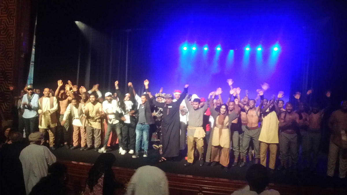 تمكن البلوشي من عرض لم يكن فقط لتشكله عناصر سينوغرافيا من إضاءة وديكور وموسيقى وملابس أدوات كالمدق والهون وغيره، أيضا في تحكمه في هذا العدد الضخم من الممثلين ـ 60 ممثلا ـ وسلاسة وليونة حركتهم وأدائهم على الخشبة، قد تكون هناك بعض الانفعالات المفتعلة، لكن لا يمكن أن ننكر أنه قدم ممثلين أظن أنهم سيكونوا في الغد القريب نجوما مثل زينب البلوشي التي لعبت دور الأم باقتدار بارع وبلقيس البلوشى التي لعبت دور الطفلة المتطلعة مع والدها الرائع "عيسى الصبحي" لمستقبل يملأه هواء الحرية، وعبدالحكيم الصالحي الذي قام بدور هجرس وهو الدور الأكثر صعوبة في العرض وغيرهم.