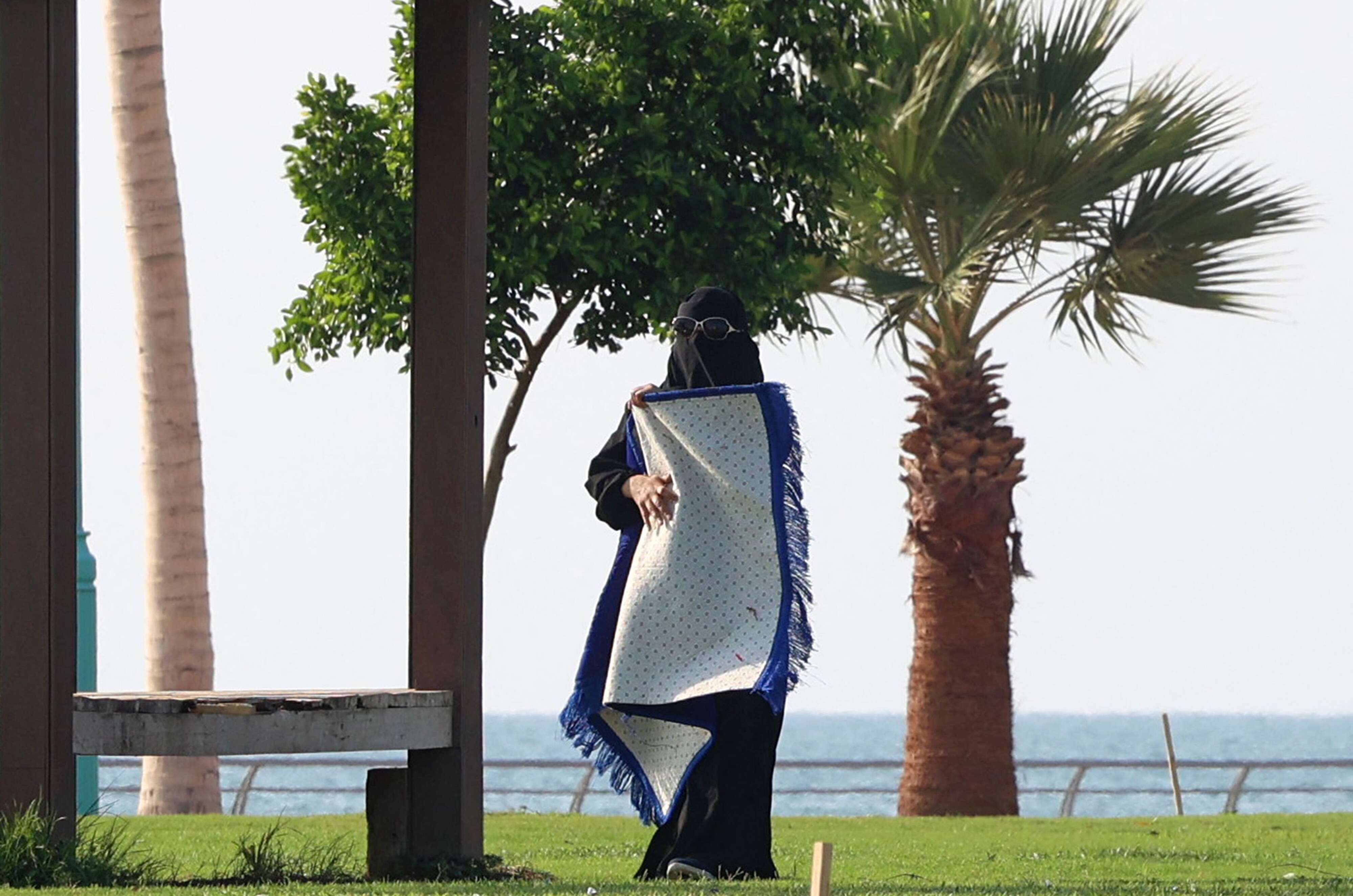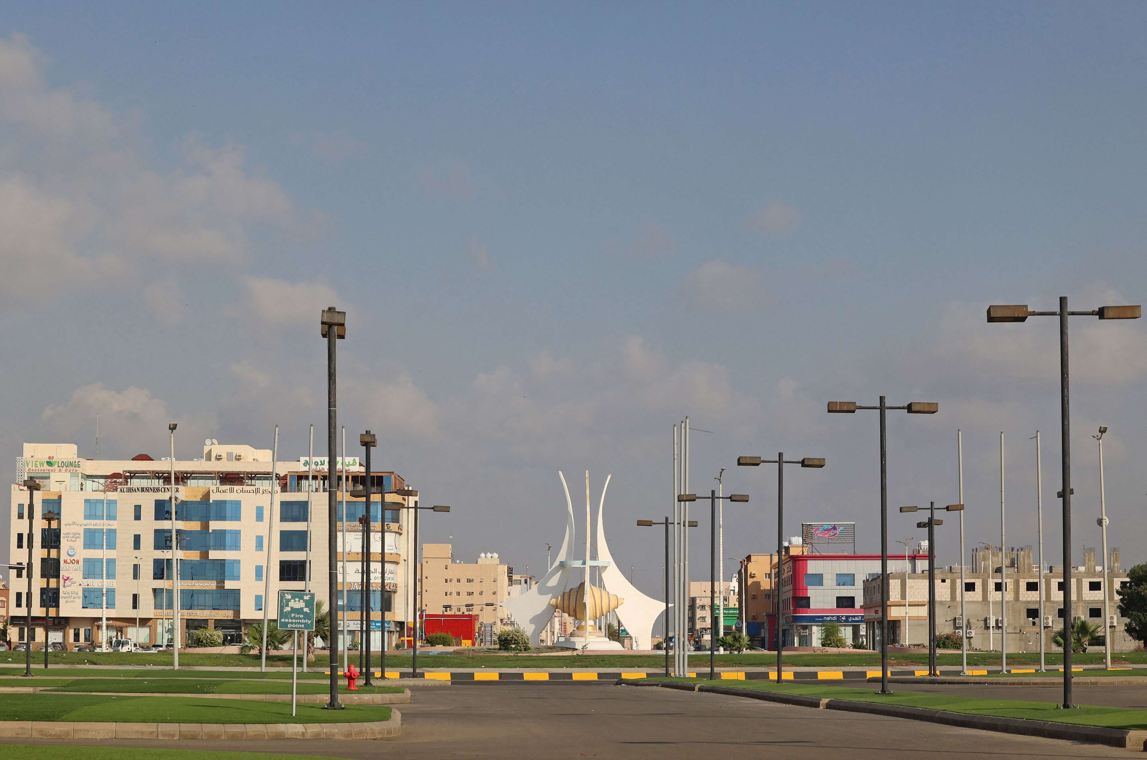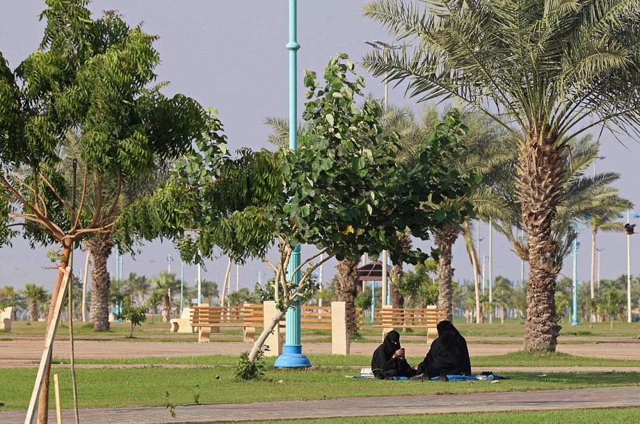 وعلى ساحل البحر، جلست بعض الأسر تستمتع بوقتها وهي تراقب أطفالها يلعبون على مقربة. وعُلقت لافتة كبيرة على إحدى الأبنية تحمل صور العاهل السعودي الملك سلمان بن عبد العزيز وولي العهد الأمير محمد بن سلمان وكتب عليها "رب اجعل هذا البلد آمنا".