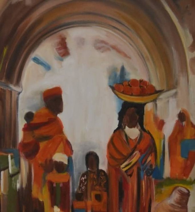 الرسامة هندة عبدالكافي بوخاتم هامت بالمدينة ونعني القيروان بحثا عن ذاتها حيث تداعت كأغنية بها شجن قديم ولا تلوي على غير العناق تجاه الألوان... والقماشة أرضها المفتوحة على الذكرى.... والنظر.