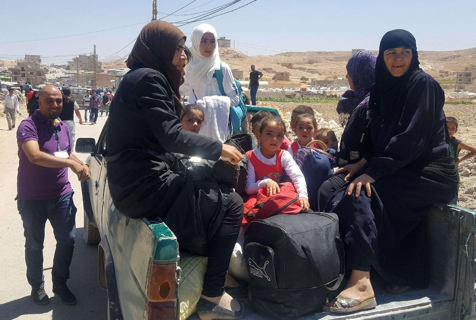 The refugees living in a border town in northeast Lebanon will travel around 20 km (12 miles) over mountains that have separated them from their homes in Syria's western Qalamoun region for years.