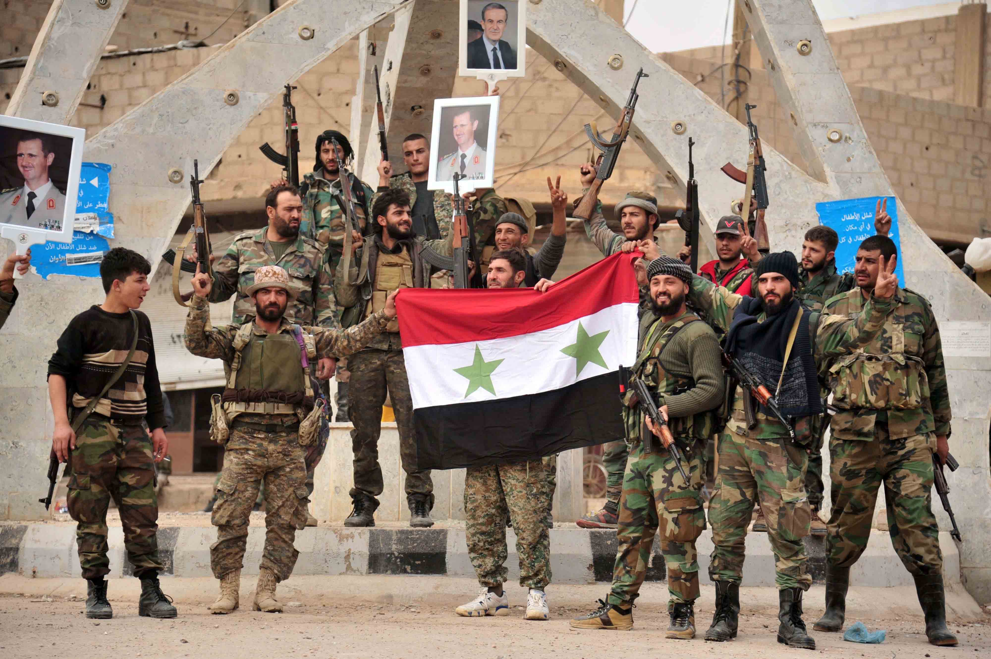 In eastern Syria, regime forces hold land west of the Euphrates River.